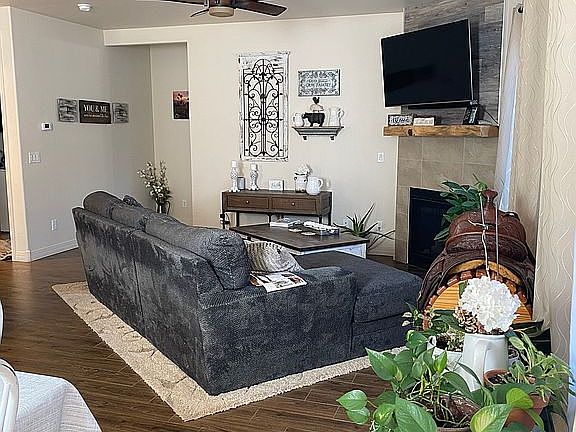 Beautiful 4 year old single level home located in Presidio in the Pines ,off woody Mountain Road. This is a large corner lot with a rear easement with an 8’ side gate. This home comes with upgrades such as Central Air, Landscaping in front with sprinkler system and finished backyard landscaping, with built in gas fire pit, executive height double sinks, wood style tile floors, 9’ ceilings and 8’ door heights, gas fireplace, and granite countertops. Window treatments and ceiling fans, water heater has circulation pump, two car garage, garbage disposal, kitchen Island and microwave. This home has electric and Natural gas and is wired as a Smart Home.The Builder is Miramonte Homes. There is a HOA which is $78/ quarter. For Sale by owner, 1% for Realtor, please call for an appointment 928-606-2010 No VA loans