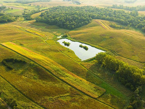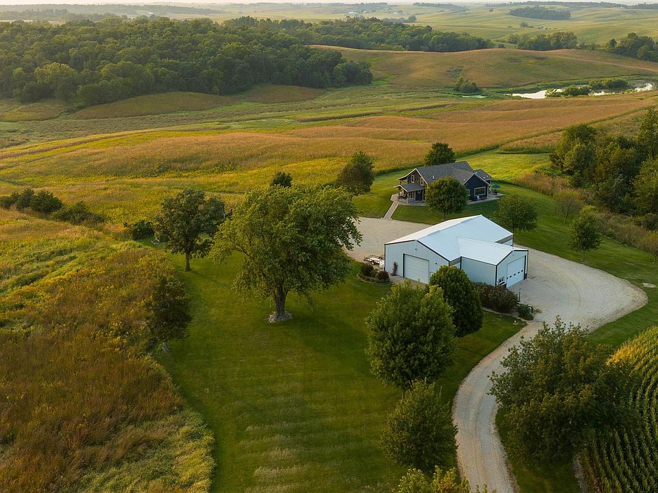 Welcome to Prairie Ridge Farm, a one-of-a-kind property in eastern Cedar County. This listing includes a high-quality timber frame home, a large and functional outbuilding, and 152 acres of a conservation masterpiece. It sits only 29 miles northwest of Davenport, with Cedar Rapids and Iowa City only 55 minutes away. Sitting atop a hill overlooking the property, the house was strategically positioned to capture the front-porch sunset views. The home is 3,600 square feet with five bed and three bath, this home perfectly blends modern luxury and timeless character. As you enter the front door, you’re greeted by a large mudroom with first-floor laundry and a bathroom nearby. The open-concept living/dining room has hickory floors and white pine beams. The kitchen has a large island with a granite countertop, stainless steel appliances. At night, you can feel the warmth of the home generated by the wood stove, the rustic wood beams, and the indirect lighting. The primary bedroom has an ensuite with custom cabinetry, a dual vanity and a walk-in shower. Follow the loft upstairs to an office and two additional bedrooms. Downstairs includes a bed/bath, a utility room, and a family entertainment room. Next to the house is a 3,000-square-foot outbuilding with concrete and electricity. The 152 acres consists of food plots, CRP, timber and ponds. Abundant pheasant, turkey, and deer population. Total income currently generated is over $17,000 from CRP and CSP. No road frontage on any side.