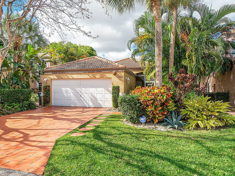 Rarely available single level home in the highly desirable and pristine community of La Vida in Boca Del Mar. This 3 bedroom 2 bath home has been meticulously kept. Home backs up to a beautiful preserve with your very own Meyers Lemon tree and screened in porch. Updates throughout- freshly painted, Kitchen features white, solid wood cabinets and a white quartz countertop. No popcorn and brand new LED lighting. Built in closets. Stainless Steel appliances. Beautiful crown molding in kitchen and 2nd bedroom. 3rd bedroom easily converted to an office/den with a wood entertainment center already built in. Don't miss out on this opportunity to live in an excellent A+ school district, minutes to Boca beaches, nearby restaurants, gyms, and more!