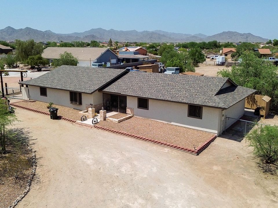 *Seller is offering $2,500 towards closing costs with a full offer* Enjoy space and comfort on a full acre in Buckeye with this 3 bed, 2.5 bath, 2,600 sq ft ranch-style home—no HOA! Inside, stone floors flow through open living areas and an updated kitchen with custom cabinets, a large island, and a walk-in pantry. A game room with a built-in bar adds extra fun and flexibility. Outside, enjoy a built-in gas grill, detached carport, and shed with its own basement. Plus, a new roof and new water heater give you peace of mind. Close to Sundance Park and just a mile from the freeway!