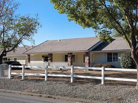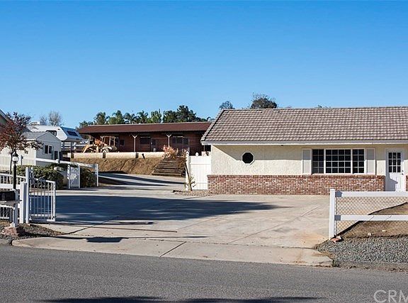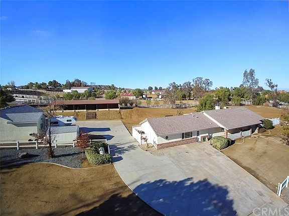Stunning ranch-style equestrian property located in highly coveted Gavilan Hills! This home boasts over 2500 SF of interior living space, including a NEW permitted add-on of 865 SF which is attached to the main home and includes a kitchenette with sink, living room area (could be a 5th bedroom), master sized bedroom with huge walk-in closet, and full bath; perfect for a mother-in-law quarters, or you could also rent it out as it is separated by a lockable door from the rest of the home! In the main area of the home there are three other bedrooms, including a spacious master bedroom with an en-suite full bath complete with dual sinks and a walk-in closet, and a sliding glass door leading out to the back of the property, and another full bathroom. The kitchen provides ample storage and prep space, and a bay window to enjoy the view. The living room features a built-in TV hutch, vaulted ceiling, a cozy fireplace, and a sliding glass door leading out to the back patio. This 1.7 acre lot is mostly flat & also has a 4 stall horse stable complete with 2 tack rooms, power, water, and wash bay! The horse trail surrounds the property and you have your own private gate to enter and exit. There is also a huge shop which includes a three car garage, an attached office area, and two huge storage rooms- one with a wash sink. Other great features include well rights (but hooked up to public H2O), a storage shed, citrus, plum, apple, and peach trees on drip irrigation, a