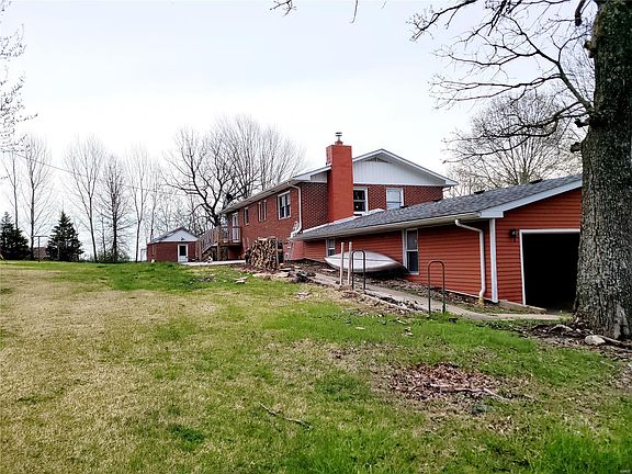 This Country Home sets back from the blacktop and has a ton of space.This raised ranch home has 3 Bedroom possibly 4th in basement without window. 2 Full bath on main floor and 1 half baths in basement. Home has Updated central heat and air and additionally This home has 2 wood burning inserts-1 on each level with beautiful brick /rock fireplaces. Updated spacious concrete patio in the back, perfect for entertaining. Great entertainment area down stairs- Big open Recreation room! Garage is 26x37.5 with 3 doors and some built in shelving stays. There is access to the front deck and back patio from the upstairs living areas. Beautiful view set atop a hill with a flat back yard for all the outdoor equipment for the kids!