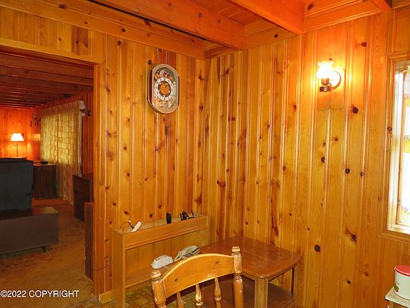 Quiet and adorable home on large lot, southern exposure and very private. Ranch style home with unfinished second level for future development. Do some work and have a MIL suite. Beautiful knotty pine tongue and groove walls, gas fireplace, office, covered entry, spacious office/exercise room Being sold AS-IS.