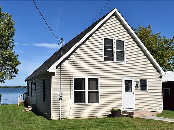 Don't miss out on this amazing opportunity to own a piece of paradise! Imagine ending your day with the captivating sunsets of this year round home on Lake Ontario! The open floorplan offers breathtaking views from the living, dining room, kitchen and sitting area of the upstairs loft. First floor features a beautiful kitchen w/stainless steel appliances, island, custom cabinets, dining area, family room, bedroom, full bathroom, and first floor laundry. The gas fireplace creates a cozy atmosphere on those chilly nights! The upstairs loft boasts a spacious master bedroom, master bath and sitting area. Large deck for entertaining and only a few steps to the water to enjoy swimming, boating, fishing & more! 2 stall garage w/upstairs storage area! Central air! Claim your castle-call today!