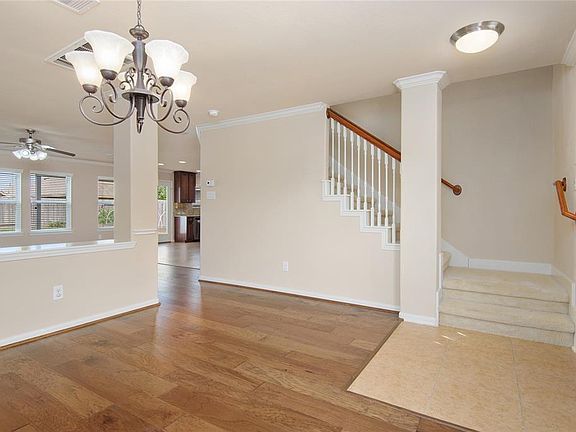 Energy efficient, open floor plan Ryland Home, w/ hardwood floors and an island kitchen w/ stainless steel appliances, modern cabinetry, granite countertops, water purification system. a large walk in pantry, and more....The living areas feature large bedrooms, formal dining, modern fixtures, a wood burning/gas fireplace, surround sound, abundant natural light, recess lighting, and rear covered patio access. The large rear yard features a fire pit, covered patio, a storage shed, raised vegetable garden planters, a flourishing apple tree and a lush green lawn. Other features include - Finished garage, dual pane windows, pex plumbing, home security system, water softener and a dual zone Hvac system. Community Pool. Available Home Warranty. Move in ready!! Not in flood zone/No flood history. Schedule your showing today!!