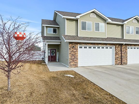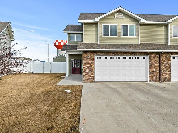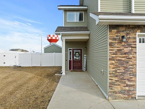 Welcome Home to this STUNNING 2 story townhouse conveniently located in NW Minot. This move-in ready 3 bedroom, 2.5 bath property is not your standard townhouse as this home has been beautifully upgraded throughout to stand out from the rest in this development! As you enter the home, take note of the tasteful wood flooring that flows seamlessly throughout the living room highlighting the great amount of natural light and pleasing layout. Cozy up around the gas fireplace featuring a beautiful stacked stone surround and lots of space for plenty of furniture arrangements. Off the living room you will find the spacious dining area and gorgeous kitchen with tile flooring. The dining area has easy access to the patio and huge backyard- the big yard is another added perk in this development! Some of the grand features of this kitchen include: quartz countertops, tiled backsplash, under cabinet lighting, soft close drawers and doors, gas range, two pantry areas, and stainless steel appliances. Off the kitchen is the convenience of a 1/2 bath and the double garage. Heading upstairs you will find 3 spacious bedrooms, 2 bathrooms, and a designated laundry room with built-in cabinets and countertops for all the needed storage space. The primary bedroom is a true retreat! The large windows allow an ample amount of natural light. The walk-in closet and primary bathroom will make you never want to leave! The bathroom boasts quartz countertops with dual sinks, a walk-in linen closet, a relaxing jetted tub, and a stunning walk-in tiled shower with dual shower heads. Talk about spa like and relaxing! Heading down the hallway is the laundry room, 2 more bedrooms, and another full bathroom with a large quartz vanity top. Take advantage of the double attached garage complete with insulation, finished walls, and an epoxy finished floor. Outside, there is a large and useful backyard- great for relaxing or entertaining. Also, take note of the storage shed and maintenance free fence as added bonuses of this expanding yard. The townhouse HOA is $80/month and covers snow removal, front yard lawn care, and garbage. Don’t miss out on this ideal townhouse to call your next Home, Sweet, Home! Call today for a showing!