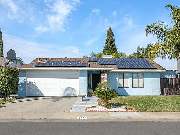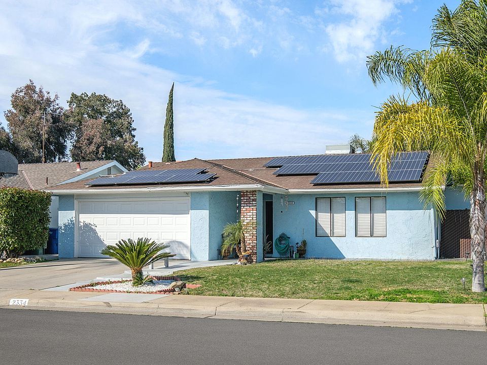 Welcome to 2334 4th St, in the city of Sanger. This is a single-story home built in 1979, it has 3 bedrooms, 2 bathrooms, a 2-car garage, and solar. As you enter, you will see a spacious living room with a built-in fireplace. The right side of the home has two bedrooms in the front, the hall bathroom, and the master bedroom tucked away at the back. The hallway has built-in cabinets, and the master bedroom has a walk-in closet with a view of the yard. To the left of the home is the kitchen that has a built-in oven, microwave, dishwasher, dining area with tile floors, and a sliding door to the yard. The backyard has a covered patio and is fully fenced. Near the park and downtown Sanger. Call/Text for your chance to view this property in person.