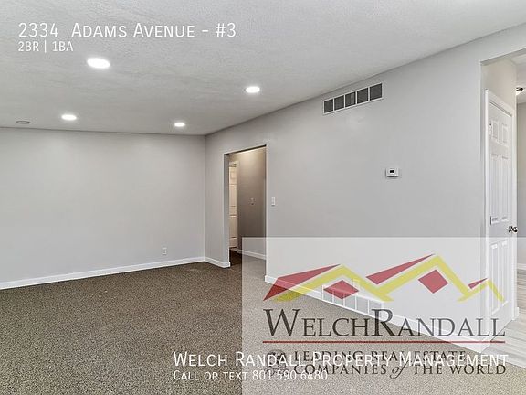 **Move-In Special: July rent is free! Potential renters applying now will not pay prorated rent for this month** Don't miss out on this incredible opportunity! Schedule a viewing today to make this wonderful unit your new home! Welcome to your new home at 2334 #3 Adams Avenue, a charming upstairs apartment in a four-plex. Located in a convenient neighborhood, this apartment offers easy access to parks, restaurants, and shopping amenities, enhancing your living experience with accessibility to local attractions. Property Details: Address: 2334 #3 Adams Avenue, Ogden UT 84401 Rent Price: $1,095 Deposit:$1,095 Lease Length: 6,9,12-month lease options Year Built: 1962 Bedrooms: 2 Bathrooms: 1 Finished Sq: Approximately 850 sq ft Property Type: 4-plex Lower Unit apartment Features/Amenities: Modern upgrades including a new fridge, all new flooring, fresh paint, modern lighting fixtures, and a completely updated bathroom. Enjoy the ease of a common area washer/dryer available for use, making laundry days a breeze within the comfort of your own home. . The unit is heated with a forced air gas furnace, ensuring warmth during colder months; however, please note there is no air conditioning provided Parking is hassle-free with one covered parking stall allocated for the unit, providing protection for your vehicle year-round. Monthly utilities/Fees: The resident will have electricity in their name. A CAM fee of $75.00 which covers water, sewer, and trash. The resident will pay a flat fee of $115.00 for natural gas (hot water and heat). Resident Benefits Package is $25 per month which features positive monthly credit reporting, quarterly filter delivery, online access to payments, and 24/7 emergency maintenance coordination. Pet Policy: Up to two pets allowed with pet rent at $35.00 per month pet with an accompanying $400.00 pet deposit. **General Welch Randall fees can be found below but some might not apply to this specific property. See the description above for all property-specific fees.** Monthly Fees: 1) Resident Benefits Pkg of $25.00 (access to maint. software, emergency line, filter delivery, positive credit reporting), 2) Utilities (contact providers for estimates). Some properties charge a flat utility fee ranging from $55 - $95 for water/sewer/garbage utility fee, 3) Pet rent of $25.00 - $50.00 per pet, or Pet Protection Plan of $45.00 (please see individual marketing for each property to see allowable pet terms) 4) For rent pricing, please reference the exact property for direct pricing. Rents are set prices and not variable, and range between $700 - $3,000. Assessed One-Time Fees: 1) One-time closing & processing fee of $195.00, 2) One-time animal administrative fee of $100.00. 3) Deposits: $250.00 is non-refundable from each security deposit 4) $100.00 is non-refundable from each pet deposit. 5) Application fee is $45.00 per adult, non-refundable You can schedule a showing for this property in the following ways: 1.2. The leasing agent is Nathan Halvorson.. Please note applications are reviewed on a first-come, first-serve basis. Welch Randall reviews one set of applications at a time. Each adult over the age of 18 who will be occupying the unit is required to submit an application. Application fees are $45.00 per adult. If you are a "backup" applicant and the property rents out before your application is screened, the application fee will be refunded. However, once your application is processed, the application fee is non-refundable regardless of whether you qualify for the unit or not. We encourage all potential applicants to review all the screening criteria prior to applying.