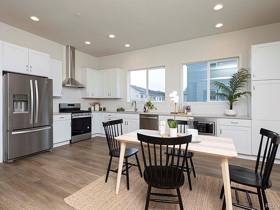 This quick move-in, solar-powered, rowhome is just a few steps from the community park and two blocks from Downtown Superior’s Main Street and the Sports Stable, with new shops and restaurants coming next year. Enjoy the Colorado seasons with multiple outdoor living spaces including a lower covered patio and upper deck accessed off the main living level. Main floor features include a spacious light-filled chef's kitchen with mountain views, all stainless steel appliances including fridge and gas range, ample dining space and open living room with fireplace and designer finishes throughout. Both upstairs bedrooms include a private bathroom as well as a convenient laundry room with stackable washer and dryer included on this level. Large primary suite features a walk-in closet and bath with dual undermount sinks, walk-in shower with seat and floor-to-ceiling tile. This home is close to bike trails, open-spaces, and a short drive to Boulder, with even more park space, including off leash areas, coming soon! All cutting-edge Efficiency and Sustainability features come standard at Downtown Superior. Not only is Solar included, but this home is also certified Zero Energy Ready by the Certified U.S. Department of Energy. You can breathe easy knowing your home is both EPA Indoor airPLUS Qualified and LEED Certified, meaning it was built from the ground-up with health in mind. Additional included features – Air Conditioning, Navien Tankless Water Heater, Active Radon System, and 100% LED Lighting. Perfectly situated between Denver and Boulder in the growing Downtown Superior community, enjoy an easy commute to CU Boulder, just minutes up US-36. Schedule your showing today! The Listing Team represents builder/seller as a Transaction Broker. *Photos show finished home of similar floorplan, not of actual home*