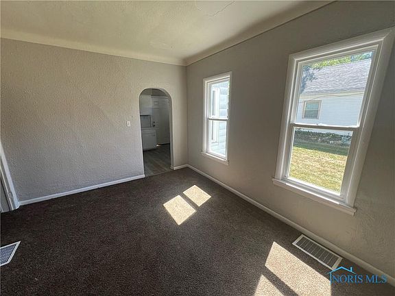 Step into this charming home with a fully covered front porch!. Inside, you'll find newer carpeting throughout and a remodeled kitchen featuring vinyl plank flooring, freshly painted cabinets, and all appliances included. Updated bathroom with newer flooring and vanity. Each bedroom boasts large closets, providing ample storage. Partial basement. Replacement windows throughout. Updated electric panel. This home would make an excellent rental property or homeowner purchase.