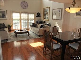 Carefree, Convenient Condo Living...Over 3000 Square feet of easy living at such an inviting price! Nothing to do but move in and this comfortable, elegant, no maintenance lifestyle can be yours... The open two story great room combine living room and dining room. Neutral d?cor, gleaming hardwood floors and walls of windows bathe the rooms in light. Beautiful well equipped kitchen, laundry room, half bath and Master bedroom with 22 ft balcony plus double closets, and private bath are conveniently located as well on the same floor. Superb loft and library overlook the great room from the floor above with 2 additional bedrooms or study/bedroom and full bath on that level. The first floor holds a charming family room with propane fireplace and wet bar. More storage plus a bath with shower stall.. Located in one of the nicest small condominium communities in the Allentown area, just 27 units perfectly located, so convenient for commuting, shopping and nearby parks and gardens. 10/01/13