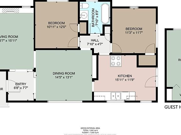 - Total interior livable area: 1,042 sqft