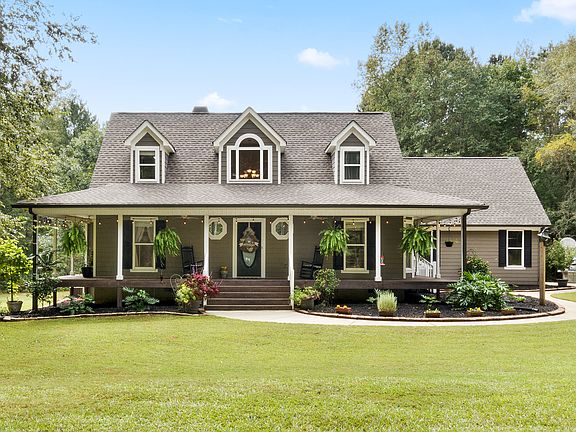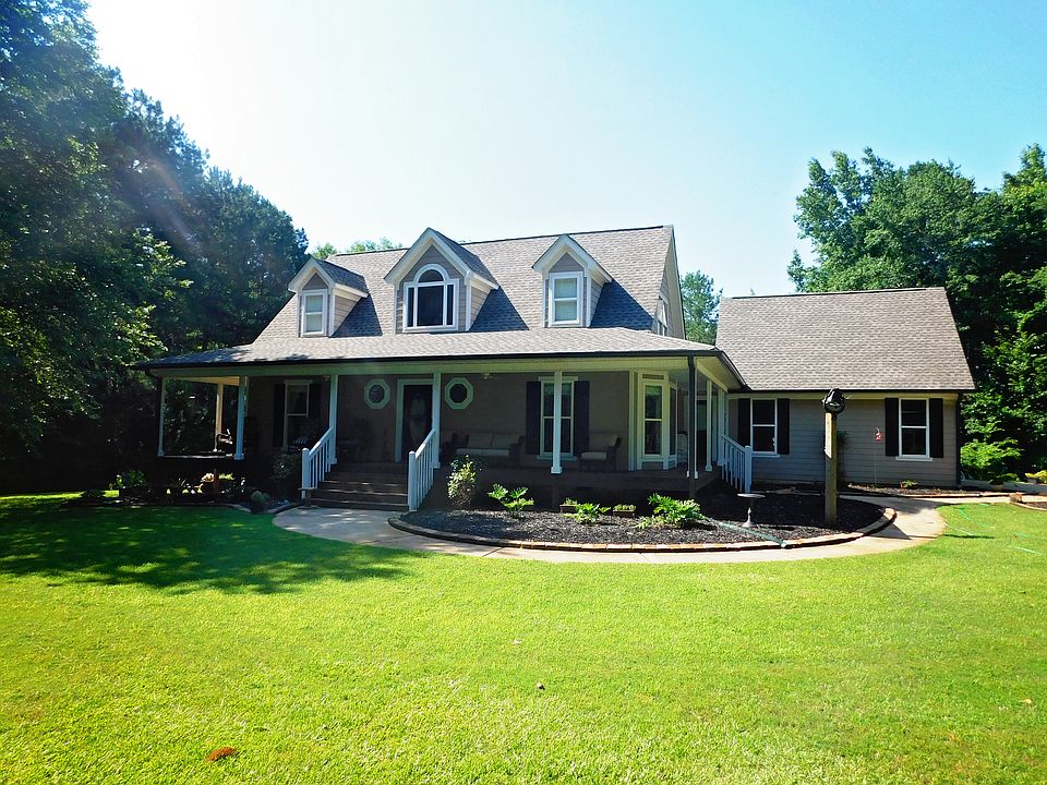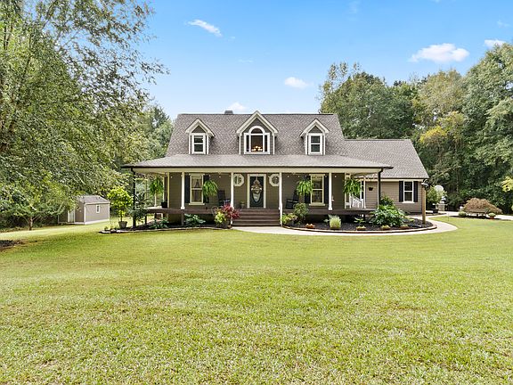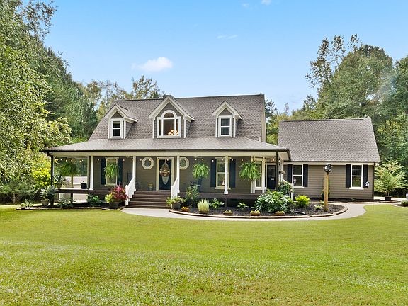 This is the one you've been looking for! Private large lot with acreage and charming 2-story home with all the outdoor space you need! Gorgeous wrap around front porch and huge rear deck overlooking the awesome yard space! Welcoming foyer entry, spacious dining area open to the kitchen with solid surface countertops and stainless steel appliances, family room with huge wall of windows with plentiful natural light and a stacked stone fireplace, separate office/bonus area, and laundry room with tile floor and private entry from front porch and garage access (perfect for coming in from work or play and changing). Laminate hardwood flooring graces the entire main level living areas (carpet only in bedrooms). The owner's suite is located on the main level and offers access to the rear deck, walk-in closet, bathroom with tile floor, dual sinks, soaking tub, and separate shower. Upstairs you'll find the perfect set up with two bedrooms (one on each side), a full bath, and a catwalk overlooking the family room. Outside you'll find a 2 car side entry garage, huge deck spanning the rear of the home, wrap around rocking chair front porch with all the Southern feels, gorgeous mature landscaping, 2 storage buildings/outbuildings, and a fenced in area for your garden already in place! Sturdy concrete sided exterior, wooded area surrounding the home for privacy and nature - watch the turkey and deer! If you're looking for a family and/or friend compound set up - also check out the adjoining property at 2330 Leguin Mill Rd - also for sale (mls #8854549) . These two homes are set up perfectly for this setting!
