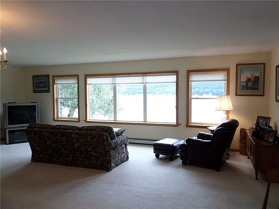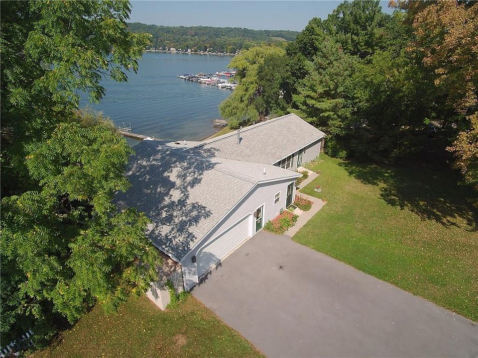 Year-round living on KEUKA LAKE with 69' of frontage on the desirable East side. 4 bedroom, 3.5 bath with public utilities including natural gas. Conveniently located near shopping, restaurants & lake attractions. Drive to the door of this immaculate, 2700+ sq. ft., home. Built in 2000, the spacious open floor plan offers an abundance of light & lake views in all directions. 1st floor Master bed & bath, laundry, living room, den & kitchen allow single level living. Finished lower level features a family room, bedrooms with A/C, bathrooms & walk-out to the beach. Hunter-Douglas shades, Energy Star windows. Generator included.