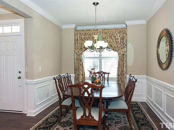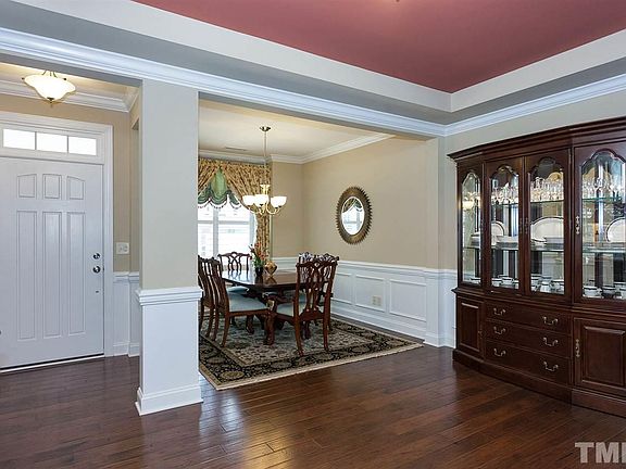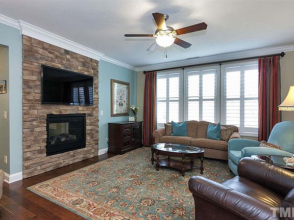 Gorgeous 4 BR home in West Cary filled with custom details and upgraded features. Wide plank, hand-scraped Hardwood flrs on main level. Gourmet kitchen w/ large island features Granite ctrs, SS appliances, breakfast rm w/ see-through stone FP into Spacious Fam room. LR and separate DR w bay window. Master BR w trey ceiling, 3 additional BR's on 2nd flr. Huge Bonus rm & full bath on Third flr. Screen porch, Plantation shutters, Butler's pantry, crown molding, . Lots of storage. Yard maintenance included.