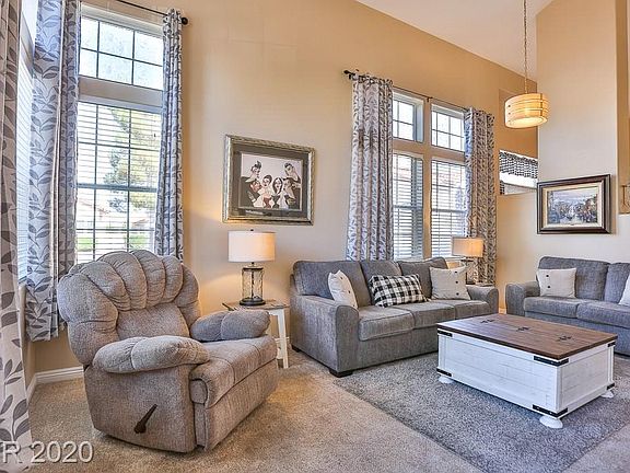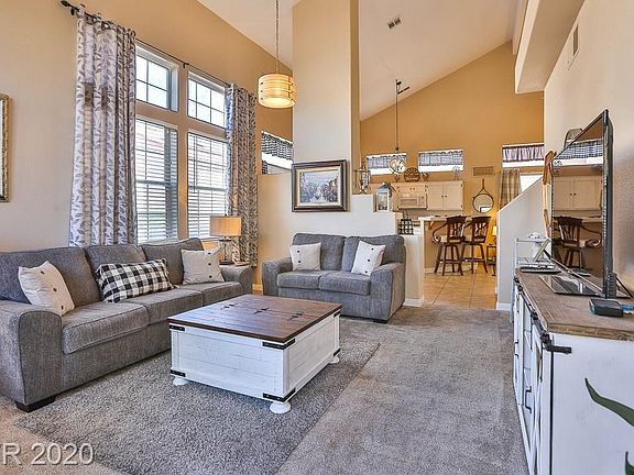 Bright and sunny home. Located in a nice gated community in the desirable south Green Valley area, with close proximity to shopping, the District, Green Valley Ranch, and freeway. This home boasts elegant vaulted ceilings; the kitchen has many upgrades. This three bedroom home has one bedroom located downstairs adjacent to the family room (with gas fireplace), along with a bathroom and shower. Upstairs has two bedrooms (including the master bedroom) and two full bathrooms, as well as a washer and dryer. This premium corner lot, with side patio, includes a gated pathway lined with artificial turf alongside the back of the home would be perfect for gardening or a dog run. Pride is evident in ownership of this home. A must see!