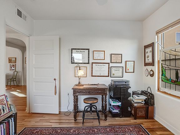 Charming North Valley gem in Acequia Jardin! This thoughtfully updated home blends historic character with modern comfort, featuring oak floors, abundant natural light, refrigerated air, an updated kitchen and bath. Enjoy a private courtyard and a unique community setting with shared gardens-just minutes from Old Town, the Nature Center and the Biopark.Casita can be reserved for guests at $30/night- this includes living area, kitchenette, bedroom, and bathroom. Owners in the community share access to the guest casita, plaza, meeting room, and gardens.