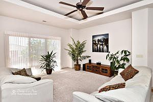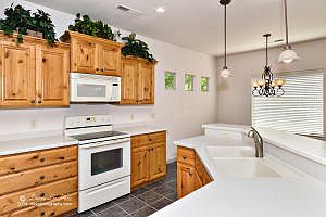 Light and bright, neat and clean, this charming 1, 612 sf, 3 bedroom, 2 bath home with its open great room floor plan features coffered ceilings, Corian counters and integrated sink in kitchen, dual sinks, jetted tub and separate shower in the master bathroom, and views from the back patio. Great location. Only minutes for shopping, recreation, and hospital.