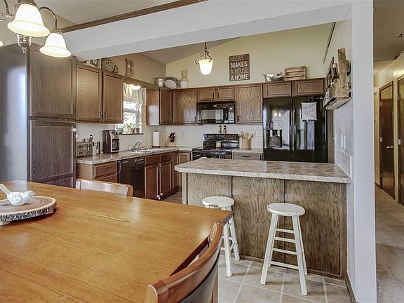 Hard to find, walk-out basement, view-out home! Built in 2008 in the desired Turkey Creek Addition. Home sits on a 13120 sq ft corner lot in a cul-de-sac with a privacy fence, irrigation well and sprinkler system. Inside has an open floor plan with dark wood finishes, main floor laundry, fireplace and a master suite with a walk-in closet. All kitchen appliances stay including refrigerator. Basement is unfinished but has the potential to have two more bedrooms and a large rec room with a walk-out. Seller has basement plan available. Home is a one owner and custom built. Easy to show!