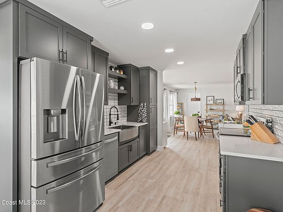 Discover coastal living in this 3/2 fully remodeled pool home, seamlessly blending modern updates with timeless beachside charm. Situated just a brief 4-minute stroll from the beach through the neighborhood's deeded access, this residence is a beach lover's dream.. The main living area of the home has wood style tile throughout. The kitchen is open and spacious, with stainless steel appliances, easy close upscale cabinets, quartz counter tops, pull out pantry shelves and bright tile work on the walls. The kitchen leads to a large Florida room with lots of windows to view a lushly landscaped yard and refreshing pool. The Pool has been resurfaced and updated with designer tiles and paver patio. The bedrooms are spacious enough for the master and 2nd bedrooms to fit king sized beds. Master has roomy walk-in closet. The master shower is elegantly tiled with gorgeous glass doors, and double vanity. The 2nd bath has also been completely remodeled with intricate tile work and vintage style vanity. The roof and A/C are 3 years old. The hot water heater is 2 years old. Home is move in ready and could be your part time home or vacation rental.
