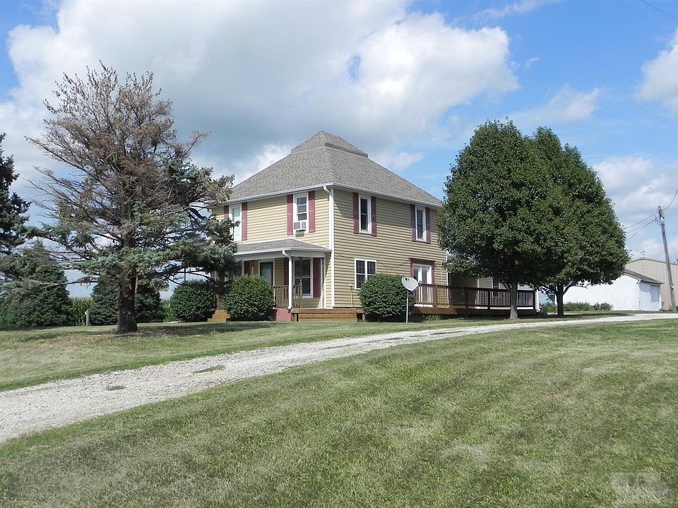 Charmed country life: picture yourself in this move-in ready, stately farm house located just minutes from town. With 4-plus bedrooms and one newly renovated bath with jetted tub, other features of this home are an updated kitchen with stainless appliances, large dining and living rooms, attached garage, and newer: roof, windows, heating/central air, siding, and water heater. Nestled on over three acres, this property offers a 36x45 Morton building, 2-car garage, 4k bushel grain bin, barn, corn crib and HUGE yard. A dream home with room to spare and the perfect property for pets, horses, 4-H animals and more...Call today to take a look. Motivated sellers, don't miss this opportunity!