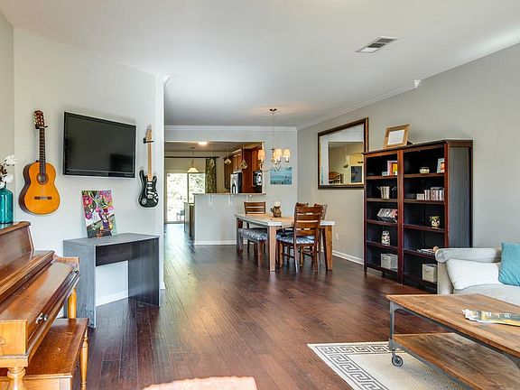Beautiful Tudor style town home w brick. Rare corner/end unit & 2 car garage. Master on main. Covered private patio facing pool. Lg gourmet kitchen with granite island. Upgraded 5" plank hdwds on main level. Bonus Rm up + finished 22x8.5 heated/cooled studio/office w extra insulation. Prewired for speakers, can lighting, fans.