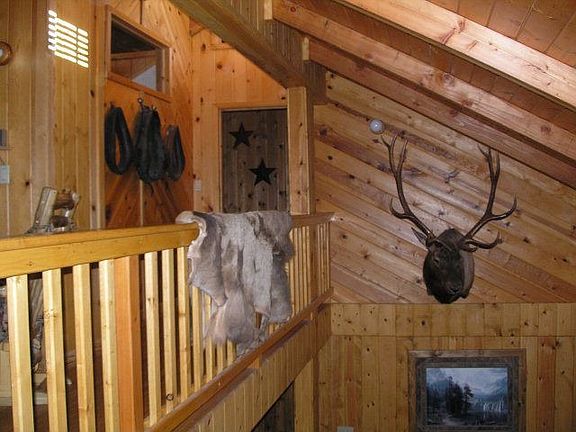 REDUCED! Incredible Summer Cabin w/the comforts of home plus Huge, Detached (2003) 40X30, 2-story Garage. Gameroom and Storage Galore Up Above. Double Garage Door w/Single Door Near Back for ATVs/Jeep. Heated. Workshop area. Tandem. Elaborate. 2 Master Bedrooms-one has Sitting Area, 2 Large Family Rooms, 2 Other Bedrooms, 3 Baths, Inside Utiity Room/Laundry, Sizeable Kitchen with Slate Flooring/SHORTSALE!Backsplash. HiVaulted Ceiling. Wood Blinds. Beautiful Wooden Staircase and Railing in Loft Area. Decorator Touches of T&G, Knotty Pine. 2 Covered Patios/Porches. If you see it, you Adore it! Stainless steel appliances in EI Kitchen. Many Built-Ins and Catchy Designs. This is a phenomenal Cabin totally remodeled and expanded in 2003. Shows like-new! Unbelievable Value! Must see to appre