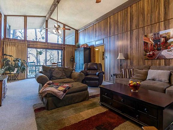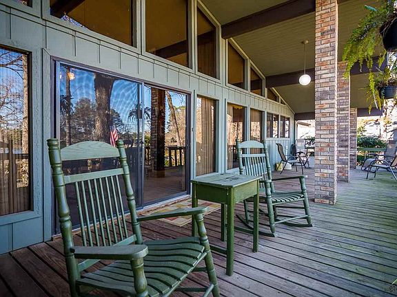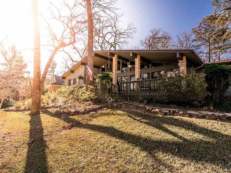 Terrific modern style with water views of Lake Palestine. High vaulted ceilings and walls of floor to ceiling windows. Open floorplan - huge covered front porch and a large corner lot filled with mature trees and landscaping. 1800sf with 3 bedrooms, 2 full baths and oversized 2 car side-entry garage. Lovely backyard with new wood fencing and storage building. HOA dues include access to neighborhood boat ramp. Enjoy gorgeous sunsets and water views from your front porch. Get away from it all and enjoy the good life at Lake Palestine! Welcome Home!