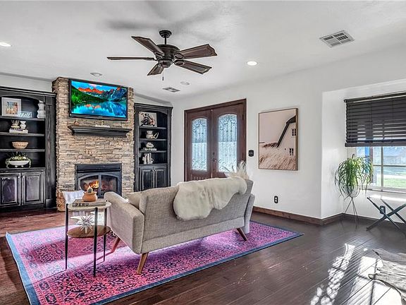 Beautifully updated home in a quiet neighborhood right off of I35 and Ladd road. WOW! Don't miss out on this beautiful 4 bed, 2 bath home! Be welcome with a covered front porch and wrought iron front double doors. Brand new carpet and a fresh coat of paint throughout. This one acre lot offers a 3 car shop, a wrap around 2 story deck, and a little ones dream come true with a miraculous tree house. Inside you are welcomed with real wood floors equipped with a fireplace, and custom cabinetry. The kitchen includes stainless steel appliances and plenty of storage with custom granite countertops. Don't miss the oversized whirlpool tub in the master. School's almost here! Come make this house your home located in one the top school districts in the state.