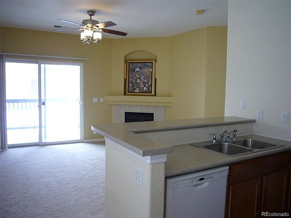 This gorgeous ground level, corner unit with two bedrooms and two bathrooms is move in ready! Featuring brand new carpet and an open floorplan with high ceilings. Spacious master bedroom with large walk-in closet and a private full bathroom with double sinks. The large guest bedroom has a full bathroom directly across the hall. The kitchen offers beautiful cabinets with plenty of counter space for cooking & entertaining and opens to the dining area and living room. Enjoy the cozy gas fireplace and mountain views with this west facing condo. Large storage closet off the covered patio. Detached one car garage is conveniently located close to the unit. Amenities include: swimming pool, basketball court, playground and clubhouse. Great location near DIA, E-470, I-70, Buckley Air Force Base. Shopping & dining nearby at Southlands Mall.