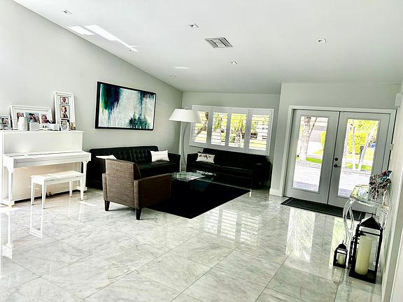 Light, Bright, and Recently (2021-22) Remodeled Residence using the Finest of Finishes! Flooring consists of Impressive Marble in the Living Areas and Hard Wood in the Bedrooms. Kitchen features Stylish Silestone Quartz Spacious Countertops, Handsome Cabinetry and Newer SS Appliances. Lovely Home is Illuminated with Sleek Flush Fixtures throughout the High Ceilings and Vogue Dining Room Chandelier. House has Impact Glass & Sophisticated Drainage System. Gorgeous Pool Decking is Comprised of Sandblasted Marble Slabs resembling a Resort, surrounding a Stylishly Tiled and Freshly Diamonded and Cool Lit Pool. Curb Appeal of the Property is the new Italian Stone Circ Driveway and it's Situated in a Central Located (virtual) No HOA Neighborhood. The Bathrooms are not original, but not updated.