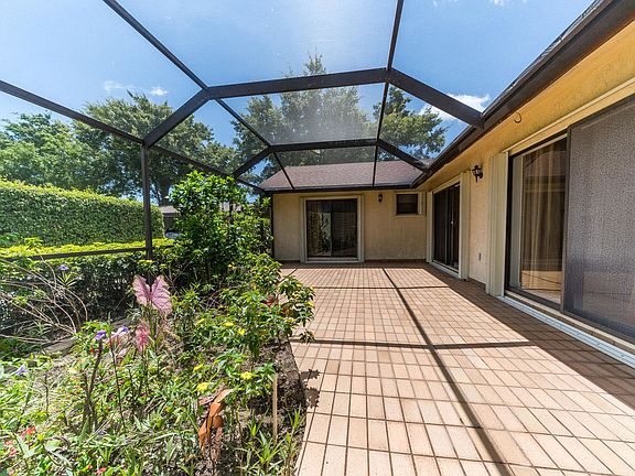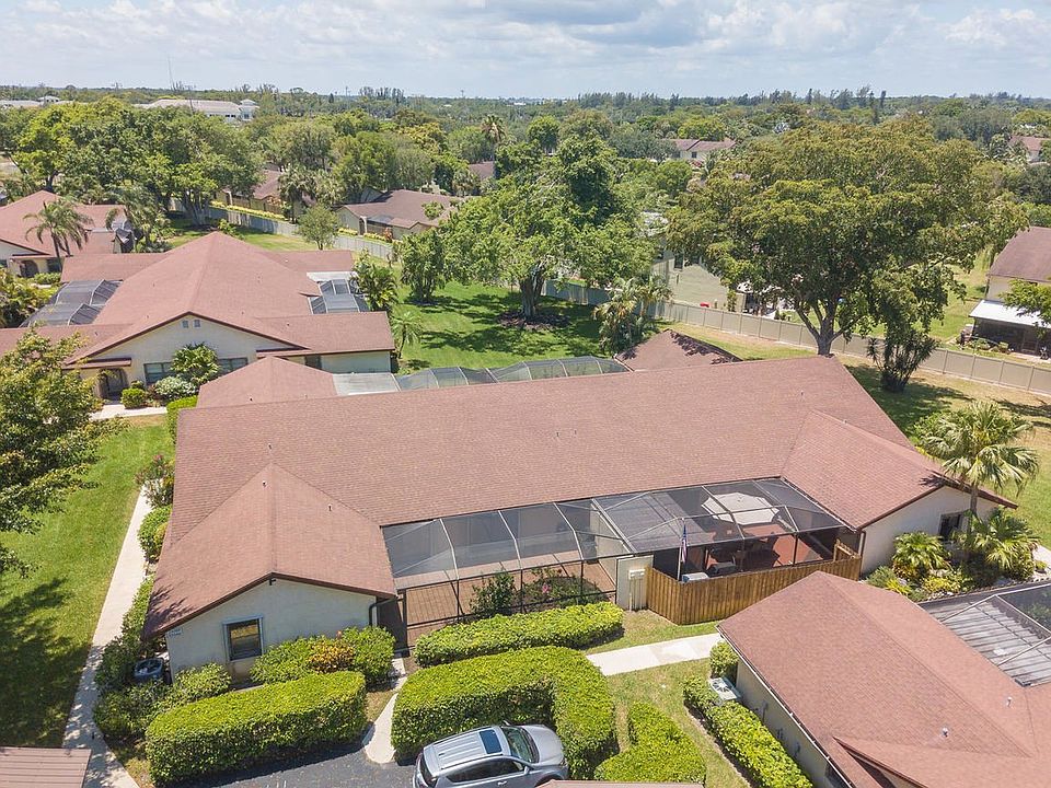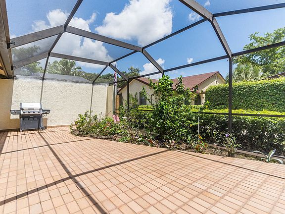 BRING YOUR PETS! Come home to park-like setting in this spacious one story 2/2 villa just steps from your carport. Front yard has mature landscaping all around, huge screened tiled 33' patio in back for your gardening and entertaining BBQs. Accordion hurricane shutters. Updated plumbing, lighting and appliances, neutral 18'' tile in living areas, ceiling fans in every room. A/C replaced 2015. Lg. eat in kitchen with pass through to dining room, vaulted ceilings in living room & master bedroom. Lots of closets! Laundry room has extra storage area, additional storage shed at carport. Up to 2 pets OK! Enjoy community pool, spa, tennis, gazebo, clubhouse and walking path around the lake. Close to shopping, bus routes, all major commutes. COME HOME TO THE LAKES OF BOCA BARWOOD!