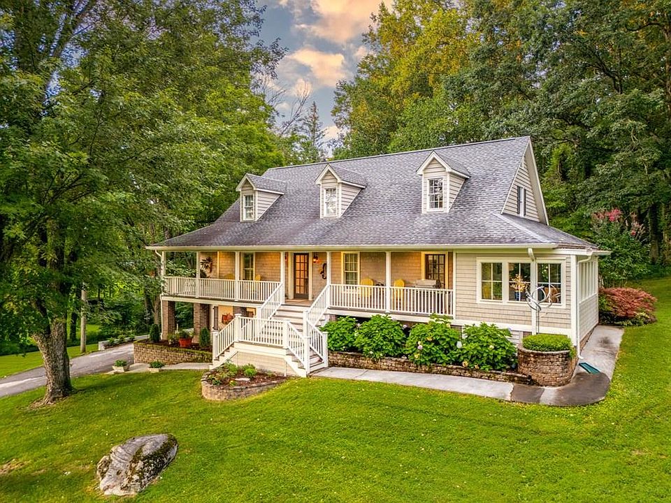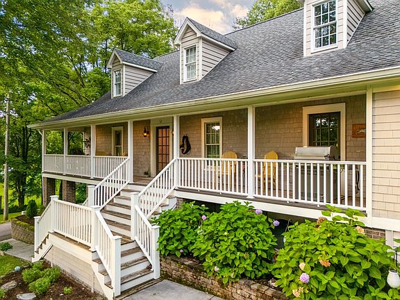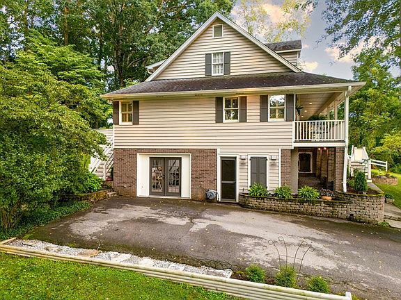 ~ Set against the backdrop of 2.38 acres of serene land, this beautifully renovated Farmhouse greets you with the inviting embrace of nature, located just a stone's throw from the waters of South Holston Lake, & conveniently situated outside the town of Abingdon, Virginia. ~As you drive in, the picturesque barn & rustic corn crib appear first, exuding a timeless character that captures the soulful essence of the countryside. They speak to the rich heritage & the story of rural life. The farmhouse itself is a masterpiece, brimming with architectural details & modern updates. The inviting charm of flowering hydrangeas & ferns, classic cedar siding & shingles, along with the gabled dormers & a spacious porch adorned with flickering lanterns, beckons you to come in. ~As you enter this refined home, you're greeted by a charming passageway that leads to the main living areas. The interior is a showcase of exceptional craftsmanship, featuring custom millwork that adds a unique touch to each room. Throughout the home, you'll find a variety of these styles, including beadboard, raised panels, coffered and beamed ceilings, wainscoting, and elegant crown moldings, all meticulously crafted and installed by the owner. Enhancements such as built-in benches, storage cabinets, and a cozy dining room banquette highlight the attention to detail and creativity in this beautiful space. ~ The Great Room, which spans two stories, features a wood-burning fireplace surrounded by elegant, tall palladium windows. It offers direct access to the deck that leads to a restful pea-gravel "fire pit" area, making it ideal for entertaining guests. ~The Kitchen & Dining Room features an open floor plan that enhances the spacious feel of the main level. Original hardwood flooring beautifully connects these areas, creating a cohesive atmosphere throughout. The Gourmet Kitchen has high-end Kitchen-Aid appliances, Carrara marble countertops, a Center Island, and the best-kept secret- a Designer Pantry!