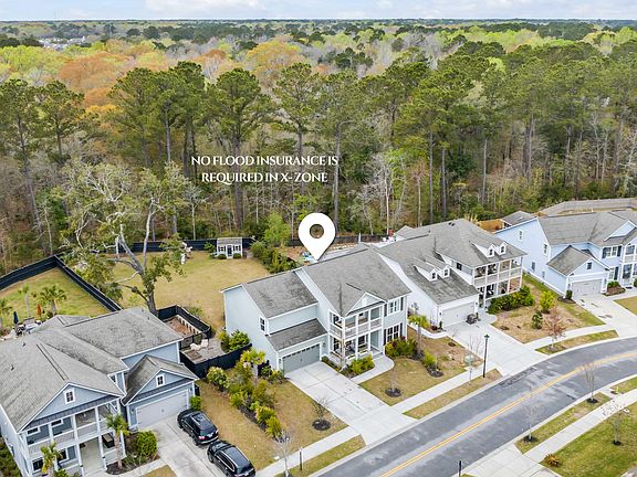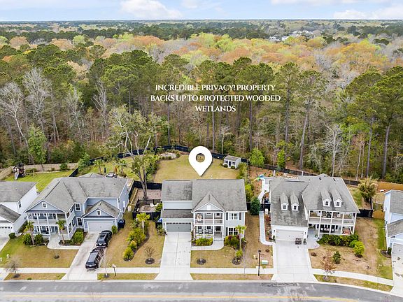 Nestled on one of the largest lots in Oakfield at 0.35 acres, this exceptional 5-bedroom, 4-bathroom home is a true standout, offering high-end designer finishes and backing up to a protected wooded area for ultimate privacy. Thoughtfully designed with both elegance and comfort in mind, this home features fresh paint throughout, striking color-drenched rooms, elegant wallpaper, and brand-new high-end lighting that adds a sophisticated touch to every space. Best of all, this home is located in an X-flood zone, meaning no flood insurance is required, and the HOA dues are just $170 per quarter.As you approach the home, you're greeted by a charming covered front porch with a hanging gas lantern, exuding classic Southern charm. Stepping inside, soaring 9ft+ ceilings in the foyerset the tone for the open and airy feel of the home. To the left, a separate formal dining room with elegant wainscoting is perfect for hosting dinner parties or family gatherings. To the right, the first-floor guest room, currently styled as an office, offers versatility and easy access to a cozy full bathroom, making it an ideal space for guests or remote work. At the heart of the home is the beautifully designed kitchen and spacious living area, both bathed in natural light. The gourmet kitchen features stainless steel appliances, a cozy eat-in banquette with built-in storage, and stylish finishes that blend function and charm. The living room offers a warm and inviting atmosphere, complete with custom built-ins and a gas fireplace, making it the perfect place to gather and entertain. Upstairs, the expansive primary suite serves as a true retreat, boasting two walk-in closets for ample storage. A private guest suite provides convenience for visitors, while the additional bedrooms offer flexibility for family, home offices, or creative spaces. The loft area serves as a versatile second living space and opens to a covered porch with a charming daybed swing, ideal for unwinding with a morning coffee or an evening breeze. Outdoor living is just as impressive, featuring a screened porch, covered patio, private garden, fire pit, play set, and a custom storage shed, with thoughtful touches such as intentional lighting and decorative window boxes. The backyard is expansive and pool-ready, with renderings available to showcase its potential. The two-car garage offers custom shelving, ensuring ample storage space for holiday decorations, tools, and more. Located in one of Johns Island's most sought-after communities, Oakfield, this home is just a five-minute golf cart ride to some of the area's most popular spots, including Lost Isle, Wild Olive, Cabana Burger Bar, shopping, grocery stores, and even the iconic Angel Oak Tree. The neighborhood itself offers a tranquil pool, walking trails, green spaces, and a playground, providing a true Lowcountry lifestyle. Every detail of this home has been meticulously designed for both style and functionality, making it an unparalleled opportunity in the heart of Johns Island. Don't miss your chance to experience the best of luxury and convenience schedule your showing today!