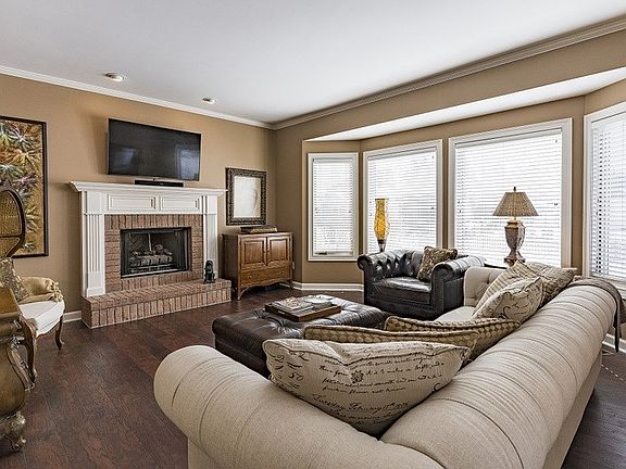 NEW PRICE, immediate possession at closing...Gorgeous, Masterpiece Homes built two-story brick home on a quiet cul-da-sac in Bridgewater with large back yard, part of Southwest Allen County Schools. Easy to show, home is empty. This traditional home boasts over 3500 square feet of living space and features a spacious eat-in kitchen that includes a large island with bar seating. This area flows into the expansive family room, which has a nine foot ceiling, stylish brick gas fireplace, and overlooks the well-landscaped backyard. The main level also features a spacious living room with hardwood flooring that opens into the spectacular dining room. Also included on this level is a den/office off the inviting entrance foyer. The upper level highlights a large 22' x 14' master bedroom with en-suite. The bathroom offers new solid surface counter tops and a garden tub with two walk-in closets. This level has three additional comfortably sized bedrooms, with a large second full bathroom that also has newly installed solid surface counter tops. The daylight basement with half bath consists of two large entertaining sections, one that could be used as a theater room and the other for a game area. The backyard is great for entertaining with a curved 16' x 35' stamped concrete deck that overlooks the well-maintained yard and surrounding pond. The home also offers an over-sized three-car garage. Wonderful neighborhood for everyone to enjoy. Hot tub not included.