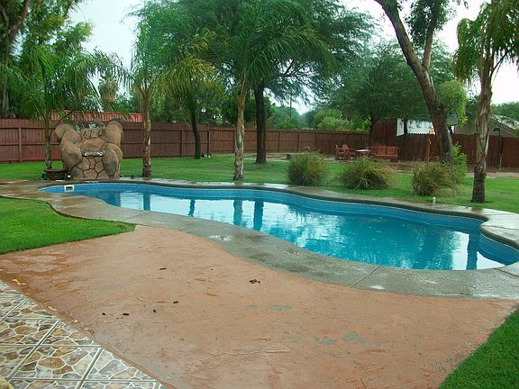 Beautiful single story residence with attached two car garage. Three bedrooms with an option for a fourth bedroom with a small office. Plenty of view to the back yard and pool area. Fiberglass Cancun style swimming pool with a recently installed salt water chlorinator. Back yard has plenty of space for recreational vehicles. Entire house property is 1.17 acres. Green grass front and back with concrete driveway. South side driveway for backyard to drive rec. vehicles. 12' by 60' insulated storage container, tractor lawnmower and LifeSource water system for the house. House has city water and canal water for the lawn. Sprinkler system with timer. Must see to appreciate. Recently appraised at $400,000.