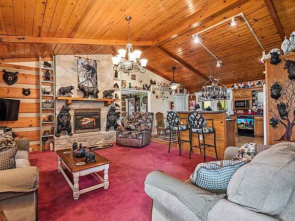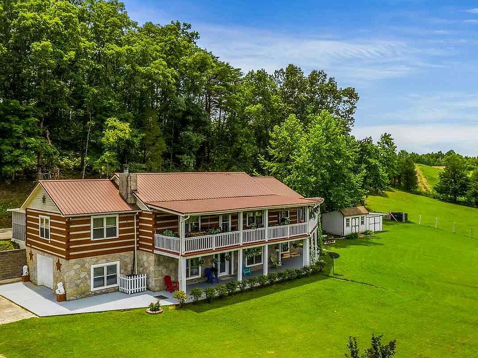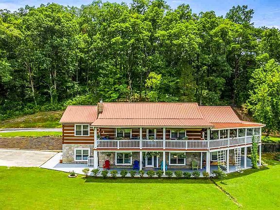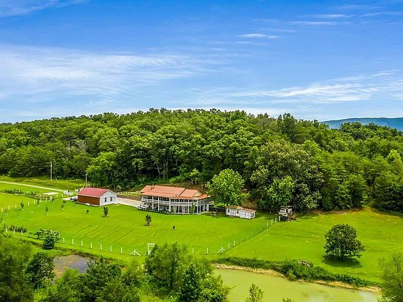 WOW! DON'T MISS OUT ON THIS ONE! A perfect lake front mini-farm with an authentic log home sitting on 12.5 beautiful acres with a pond! This private retreat is two homes in one! The upper level features an open kitchen and living area with natural stone fireplace, formal dining room, huge master suite with jetted tub, shower, double vanities, and walk-in closet, guest bedroom, and full guest bath. The downstairs has a full kitchen, living/recreation room, another large bedroom, full bath, & workout room. There is even a detached 4-car garage/recreation room set up with a karaoke stage! The grounds are beautiful with budding apple, peach, pear, & plum trees. You will want to sit all day on one of three wrap-round deck/porches enjoying the LAKE OR POND VIEW! Includes over 100 ft in screened porches! Plenty of pasture for horses or other livestock. The owners are even willing to leave their 15 chickens and 2 ducks. The home is loaded with storage on the inside and has two utility buildings outside.