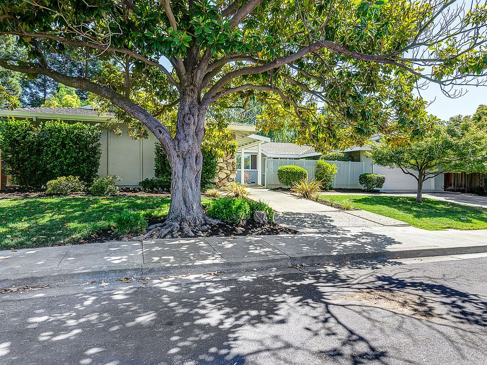 Single story with updated eat-in kitchen, hardwood floors, formal living and dining rooms, spacious family room with fireplace and Anderson slider to backyard. Private front courtyard and spacious backyard with patio and lawn.