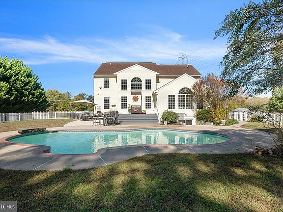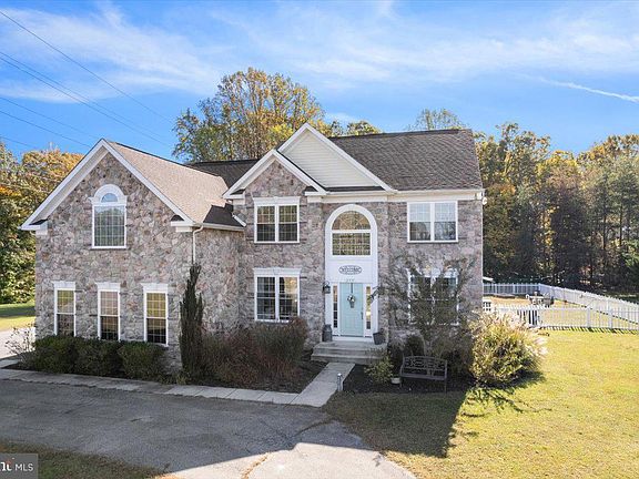 Welcome to this exceptional Huntingtown property—just in time for the holidays! Ideally located with no covenants and no HOA, this home offers outstanding flexibility and value. A circular driveway with generous parking leads to the attractive stone façade. The fenced outdoor living area features a patio, deck, and a private 16 x 32 organic edge inground pool with boulder accent and brick coping, ready to enjoy for the 2026 season. Inside, the home offers an appealing layout with an open staircase and soaring ceilings that enhance the main level and the spacious primary suite. The carpet throughout the home is brand new, and the paint is fresh, for a move-in ready offering! Upon entering the two story foyer, hardwood floors flow through the dining and formal living room into the impressive two-story family room with abundant natural light and a fireplace with pellet insert. The family room, kitchen, and sunroom/breakfast room connect seamlessly, with a custom built-in and under-counter refrigeration for easy dining and entertaining. A main-level office and also the formal living room (ideal 2nd office/playroom) add versatility. The upper level has an overlook walkway between 4 bedrooms. The primary suite is a complete owner's domain with vaulted ceilings, a large sitting room, 2 large closets, a bathroom with jetted tub and shower + dual vanities! The walkout lower level with bath rough-in invites future finishing. Three-car garage. Thoughtfully priced, and ready to enjoy for the holidays.