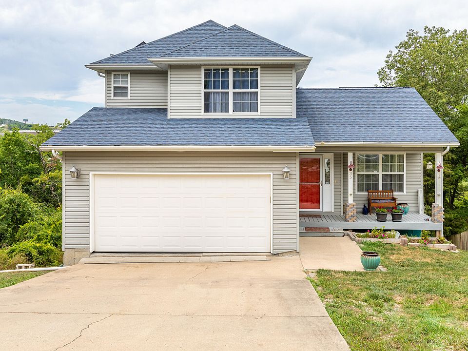 Welcome Home! Better than new 4 bed, 3.5 bath, 2 living areas, all electric walkout basement home complete with SOLAR PANELS. Imagine minimizing future inflation on your utility bills by having solar panels on the roof! The average electric bill for the home has been less than $100/month over the last 12 months. What a great floorplan! The main level features an inviting living room with vaulted ceilings and an electric fireplace with stone accents. The kitchen has all stainless steel appliances that stay with the home. To complete the main level, you will also find the dining area, laundry room, and a half bath for guests.Upstairs you will find the relaxing main owner's suite with full bathroom including a dual vanity. To finish off the upstairs, you will also find two additional bedrooms and another full bathroom.Then downstairs in the walkout basement you will find a second living area with a wet bar, bedroom and a gorgeous full bathroom with walk-in shower. The basement would make an excellent mother-in-law's quarters, with full en-suite, or a great private space for guests.The home also features a covered front deck, rear deck with panoramic views, laminate flooring throughout, and a whole-house water filtration system with water softener.Home warranty is being provided by the seller! Home is convenient to Hwy 65. Only 6 minutes away from Branson Landing and Lake Taneycomo, only 13 minutes away from Table Rock Lake State Park marina, and 16 minutes to the Branson airport.