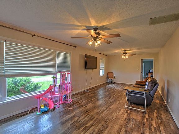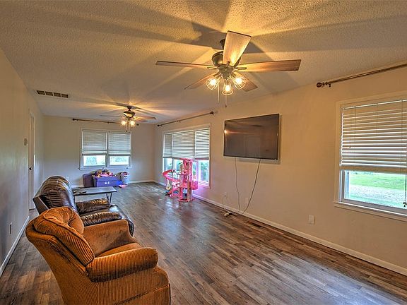 Country living in the Central A&M School District! 3 bedroom, 2 bath ranch on just under 2 acres! Spacious living room with laminate flooring. All three bedrooms have hardwood floors. Additional cabinetry in kitchen/dining area is perfect for a coffee bar. Lots of storage. Spacious laundry/ bonus room with two walk in closets. New concrete patio on back of home. 4 car detached garage, part of which is insulated, wall unit ac & propane line trenched for heat. Culligan UV water filtration system. Water heater new '23, dishwasher '23, disposal '22. Many trees and perennials including a black cherry tree, 2 apple trees, 1 peach tree, asparagus and rhubarb.