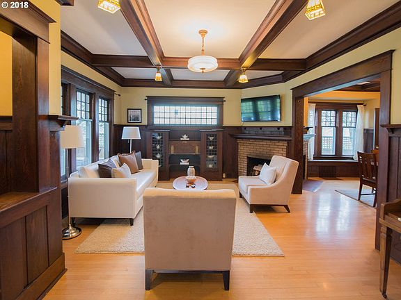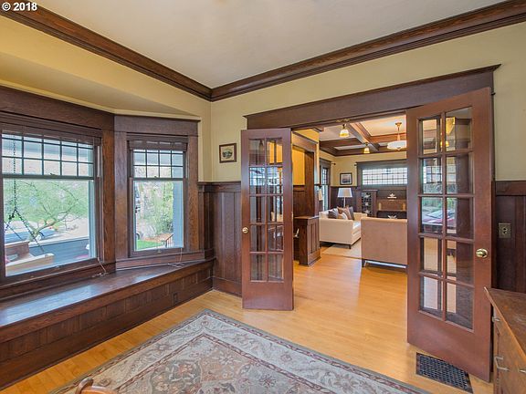 Grand craftsman Bungalow filled with period charm!Gorgeous woodwork,built ins,box beams,double fireplace!Versatile floor plan with 3 plus bedrooms up, bedroom + bonus + office main, finished basement with 2 beds,kitchenette,bath, o/s entrance- AirBnB, ADU,mother in law or rental? Remodeled kitchen, stunning bathrooms,new roof,exterior paint,gas furnace. Fabulous location in Hollywood- Whole Foods, farmers market, restaurants, theater!! [Home Energy Score = 1. HES Report at https://api.greenbuildingregistry.com/report/pdf/R259323-20180312.pdf]