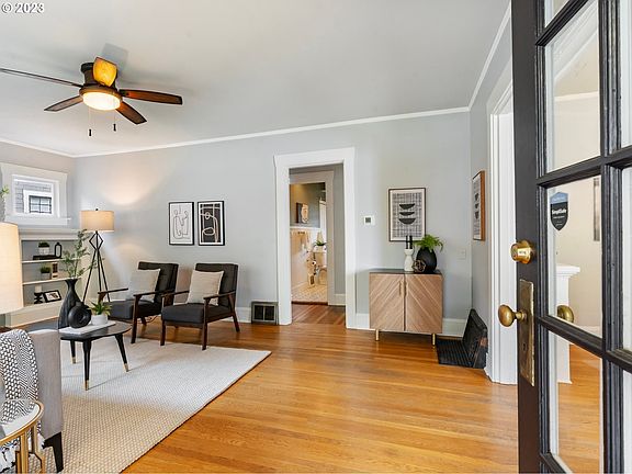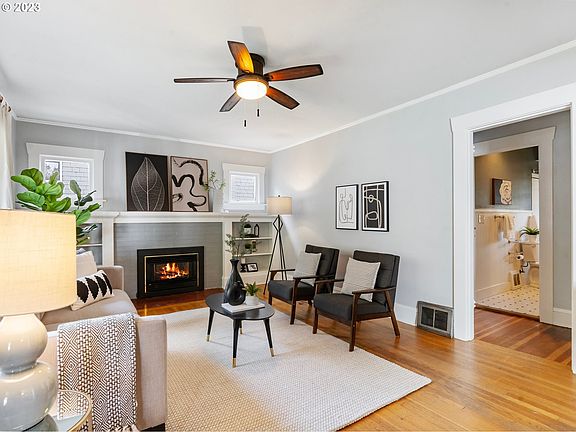Outstanding Bungalow in Rose City Park! Lovingly updated while keeping the period charm of a 1923 home. Featuring hardwoods, built-ins, fireplace and an updated kitchen. The kitchen features stainless steel appliances, gas cooking, concrete and butcher block countertops and beautiful tile backsplash. Two main level bedrooms with hardwood floors are situated on either side of the full bathroom with hexagon tile floors and soaking tub. Partial finished basement with laundry, great ceiling height and storage. Serene yard with fruit trees, raised beds, and secluded feeling. [Home Energy Score = 9. HES Report at https://rpt.greenbuildingregistry.com/hes/OR10183127]