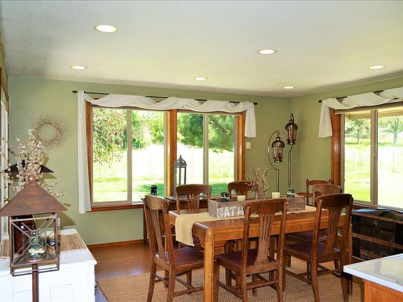 Picturesque property with Smith Rock & Mountain Views! This 4 bedroom, 2 bath home sits on 5.75+/- acres with 4.60+/- acres irrigated. Bright and inviting great room with bamboo flooring and wood stove, formal dining area, family room and spacious kitchen with newer appliances and pantry. Detached garage with 12x24' insulated storage area. The barn also has a 12x24' insulated storage unit with solar panels that help power property. Fully fenced and set up for cattle. All irrigation equipment included!