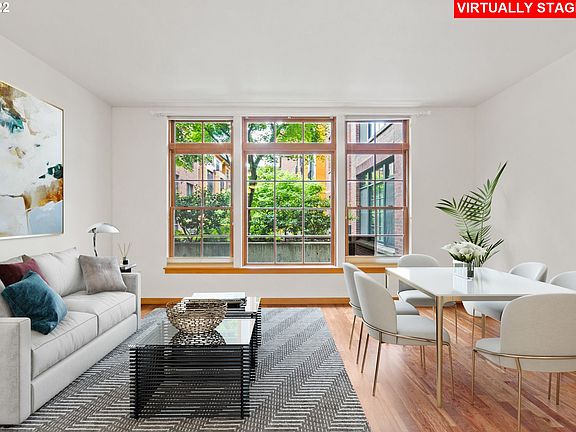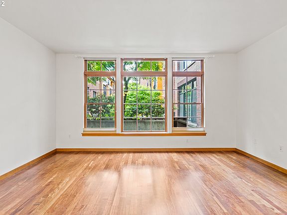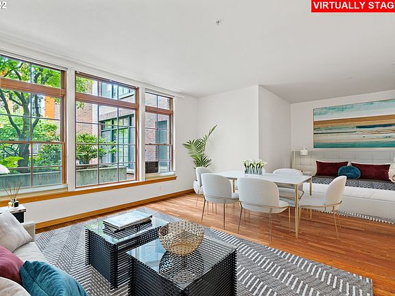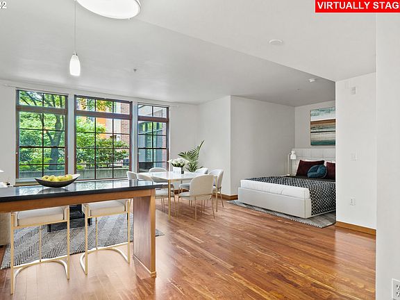 This pristine studio in the Vaux faces the beautifully landscaped courtyard offering bright days and peaceful nights. Excellent open floorplan provides flex living space. Hardwood floors, charming oversized windows, custom kitchen with eat-in bar. Unit includes washer/dryer, kitchen appliances, central AC, deeded parking, and storage. The Vaux is ideally situated off NW 23rd, close to restaurants, shops, parks.