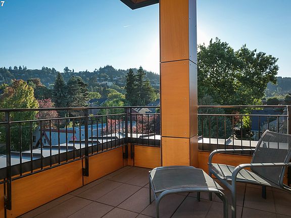 Beautiful, light filled penthouse with a fantastic layout & all the conveniences of condominium living. It features a chefs kitchen with stainless steel appliances, a kitchen island, & exterior vented range hood. Open floor plan & abundant windows create a soft natural light throughout, gracefully inviting the outdoors in. Enjoy lovely treetop views of the neighborhood, west hills, & a peek a boo city & Mt. Hood view.