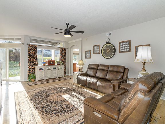 NO STEPS. Low taxes. 2 car garage! Huge unit with custom finishes. 2-3 bedrooms. Brand new HVAC (6/22), brand new microwave and refrigerator (11/23). GORGEOUS custom kitchen. Newer luxury vinyl flooring. Fischer Homes Saybrook floor plan condo located within walking distance to the pool & clubhouse. Enormous primary suite with adjoining luxurious primary bathroom featuring large walk in closet. Gourmet kitchen with attached breakfast room leading to the walkout door to your patio area, ideal for pets. Open family room features a wall of windows providing plenty of natural light. Large study (could be 3rd bedroom) with built in shelving. USDA no money down possible financing.