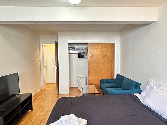 **Furnished bedroom with private bathroom and in-unit laundry near Cal, available 6/1** Share a two-bedroom, two-bath apartment centrally located in Berkeley at Russell and Telegraph. One bedroom with private bathroom available for rent that shares a kitchen and in-unit laundry. Bedroom is large enough for a full-size bed, small sofa, desk, and small dining set. It is currently pictured as-furnished, renting furnished would be preferrable. * Current roommate is a female working professional who works from home part-time If you're interested in seeing the apartment, please message with: * Desired move-in date * Length of time you think you'll live in the apartment * Number of occupants * Number of animals * Days/ times you're available to see the apartment * Your current occupation (student, working, etc) ABOUT THE APARTMENT: * Apartment was originally a one-bedroom with living room and has been converted to a two-bedroom with no living room * Large bedroom with private bathroom * Kitchen and in-unit laundry is shared * Room is large enough for bed, desk, and small futon, pictures are of the same room furnished and unfurnished * There is no shared living room * First floor unit * Parking available for $60/ month * Available 8/1 * Bedroom is * Gated complex * Updated kitchen with granite countertops * Coin-operated washer/ dryer located in building * Rent includes garbage. Tenant responsible for electricity, gas, water. * Small dogs considered with $1k refundable pet deposit, $50/ month pet fee, and references * 12-month lease, renewed annually LOCATION: - Fantastic, centrally located walker & biker's paradise: 92 walk score, 98 bike score - 2 blocks to Whole Foods - 3 blocks to Berkeley Bowl, Walgreens - 10 blocks to UC Berkeley - 3 blocks to Alta Bates Hospital - 3 blocks to Shattuck - 0.9 miles to Ashby Bart 12-months starting 5/1