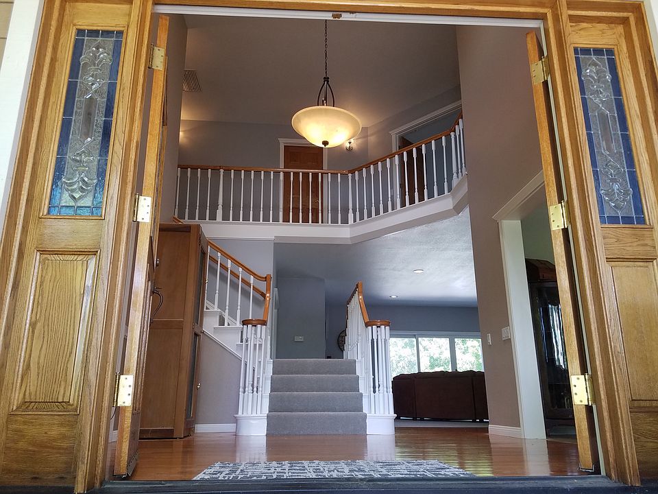 - Vaulted Ceilings, Walk-in Closets, Ceiling Fans, Window Coverings, Garden Tub, Pellet Stove, Fireplace, Flooring- Carpet, Flooring- Tile, Flooring- Hardwood, Dual Pane Windows