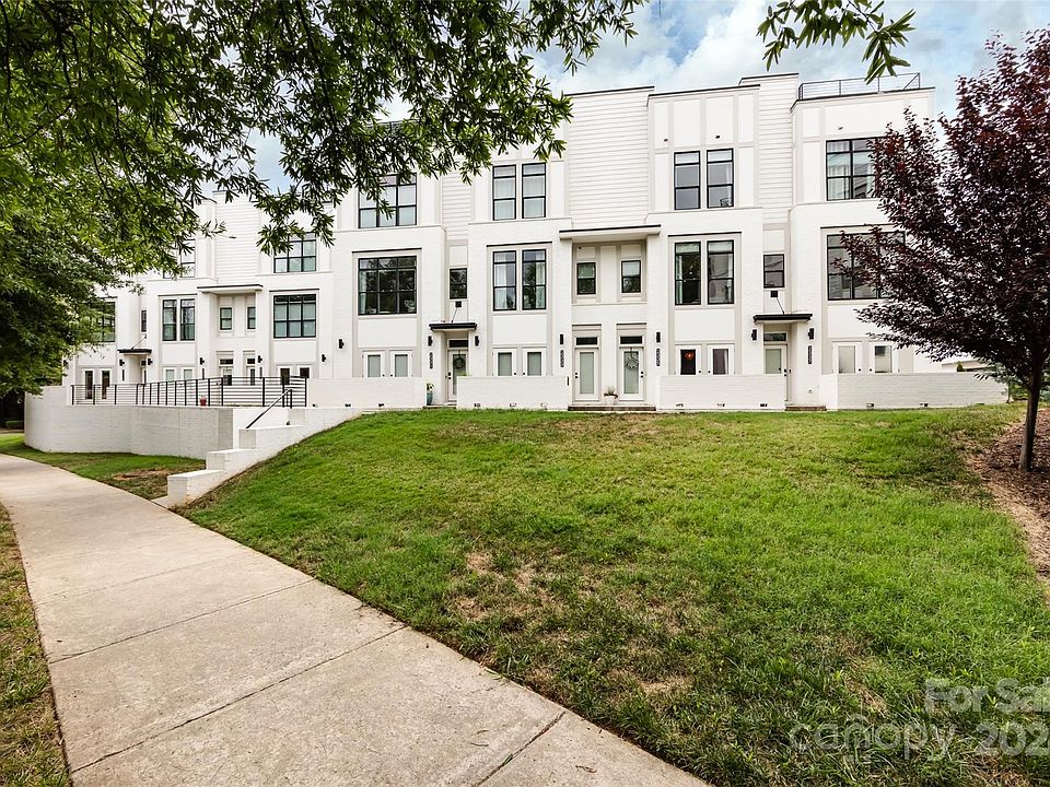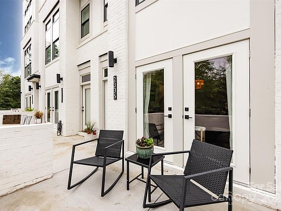 Discover modern living at its finest! There is a bedroom/office and full bath on the lower level. This townhome has an open concept that allows you to step into the chef's kitchen which takes center stage and then flows effortlessly to either the dining room or living space. Quartz countertops , a waterfall island, a gas cooktop, and sleek black SS appliances create a culinary paradise. The primary bedroom has ample closet space and the bath has dual vanities and a luxurious glass enclosed rain shower. Don't miss the sprawling rooftop terrace overlooking Stewart Creek Greenway which is great for lounging or watching a game. There is driveway parking and a one car garage w/ a utility room for storage. There is a tankless water heater. The closets are custom designed. Everything seamlessly blends style and functionality! Located in vibrant Wesley Heights, walk to local hotspots like Pinky's, Lucky Dog Bark and Brew, Not Just Coffee, and the Rhino Market as well as the BofA Stadium.